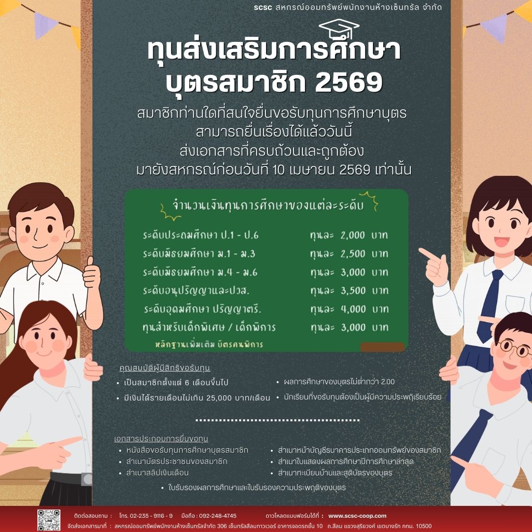 ทุนส่งเสริมการศึกษาบุตรสมาชิก ปีการศึกษา 2569