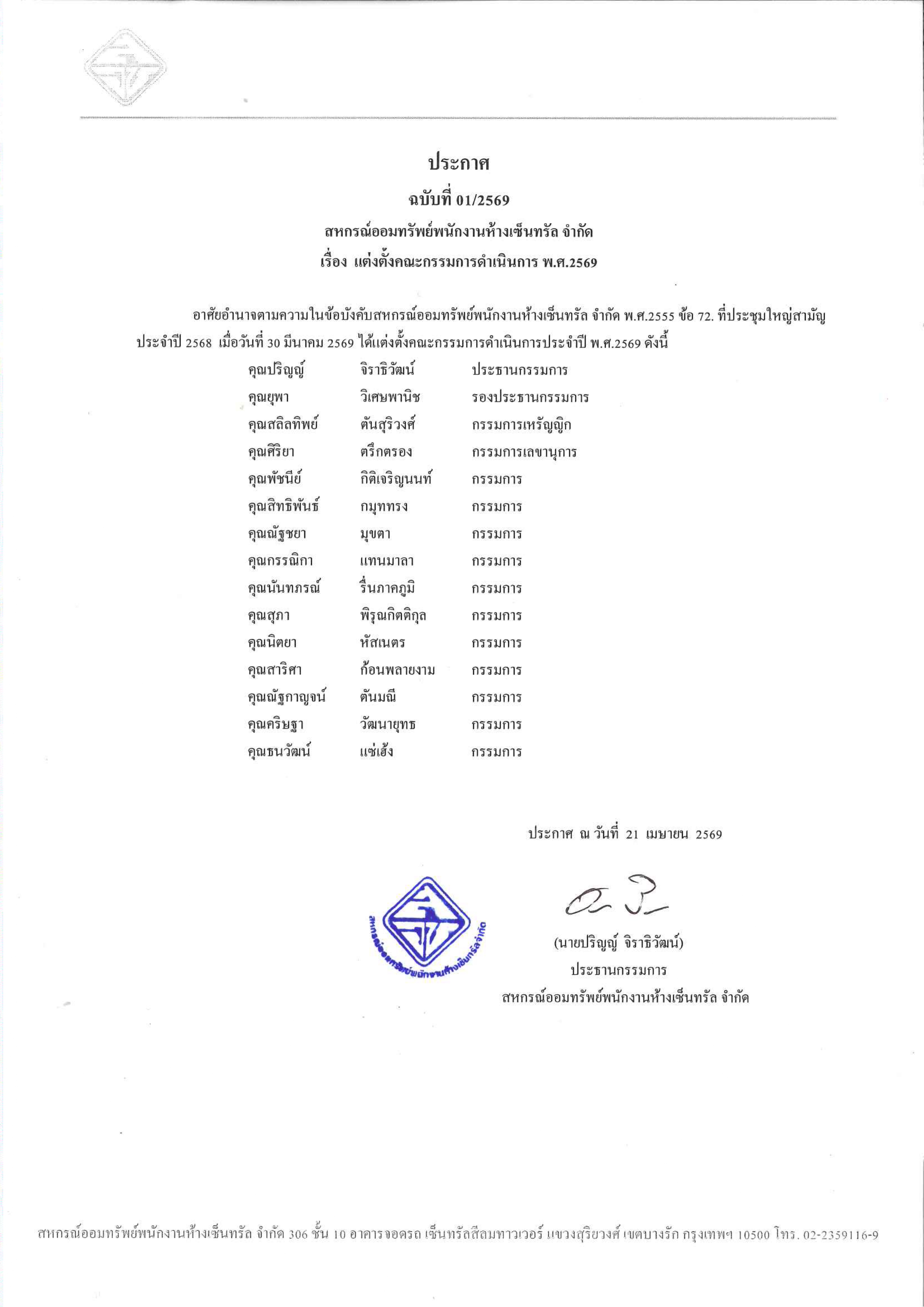 ประกาศฉบับที่ 1-2569 เรื่อง แต่งตั้งคณะกรรมการดำเนินการ พ-ศ-2569
